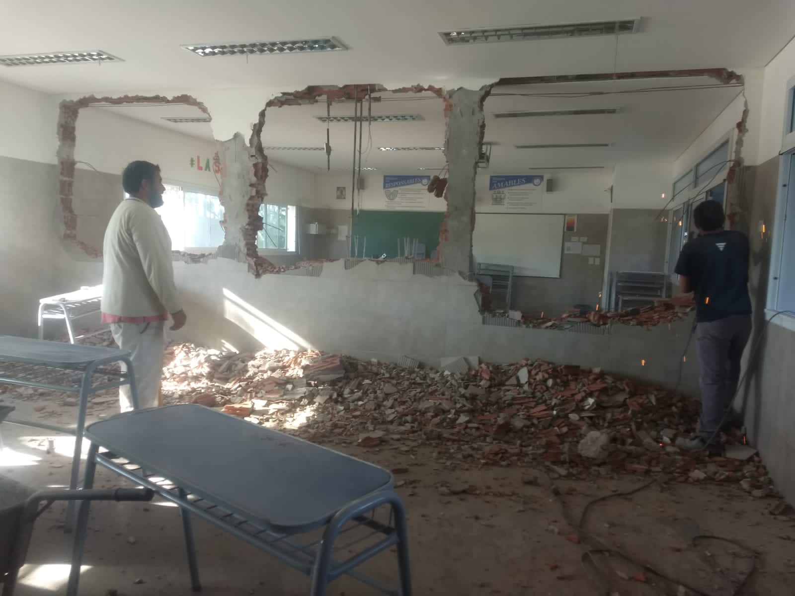La obra consistió en duplicar el tamaño de las aulas que requieren los alumnos de 5° y 6° año para asegurar la conservación de la distancia establecida de 1,5 metros entre estudiantes y de 2 metros en relación con sus docentes.