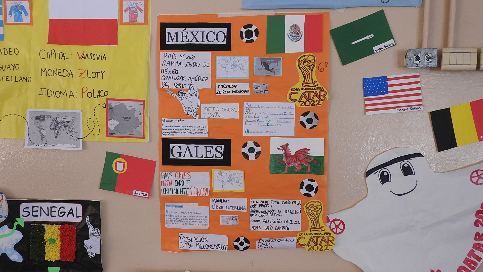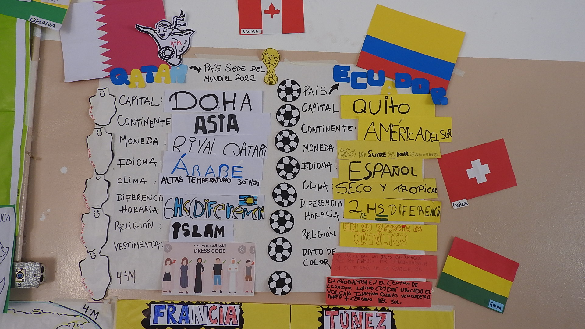 En el Nivel Inicial y Primario trabajamos con el mundial de fútbol desde una perspectiva pedagógica: acceso al conocimiento y el trabajo colaborativo. Entre todos completamos un álbum y construimos un mural informativo.