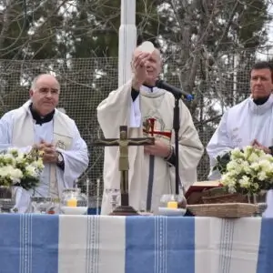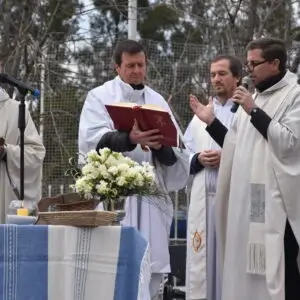 La mañana comenzó con una Misa presidida por Mons. Guillermo Caride, obispo auxiliar de San Isidro y concelebrada por los padres Juan Pablo Jasminoy, Juan Ibañez, Agustín Martens, Jaime Morea, Juampi Contepomi y Agustín Pollitzer.