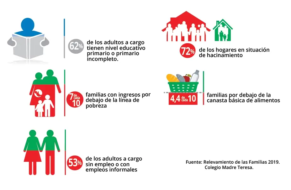 Los niños, niñas jóvenes y sus familias, transitan diariamente tiempos de incertidumbre, de inseguridad, de necesidad, de precariedad laboral, de no asistencia a su salud y exclusión educativa. Todo esto erosiona su autoestima y dignidad personal; y la desmotivación, la apatía, el desinterés y la desilusión constituye el escenario que los rodea (Baeza y Bertrán, 2013), en complemento a la no cobertura de sus necesidades materiales básicas.